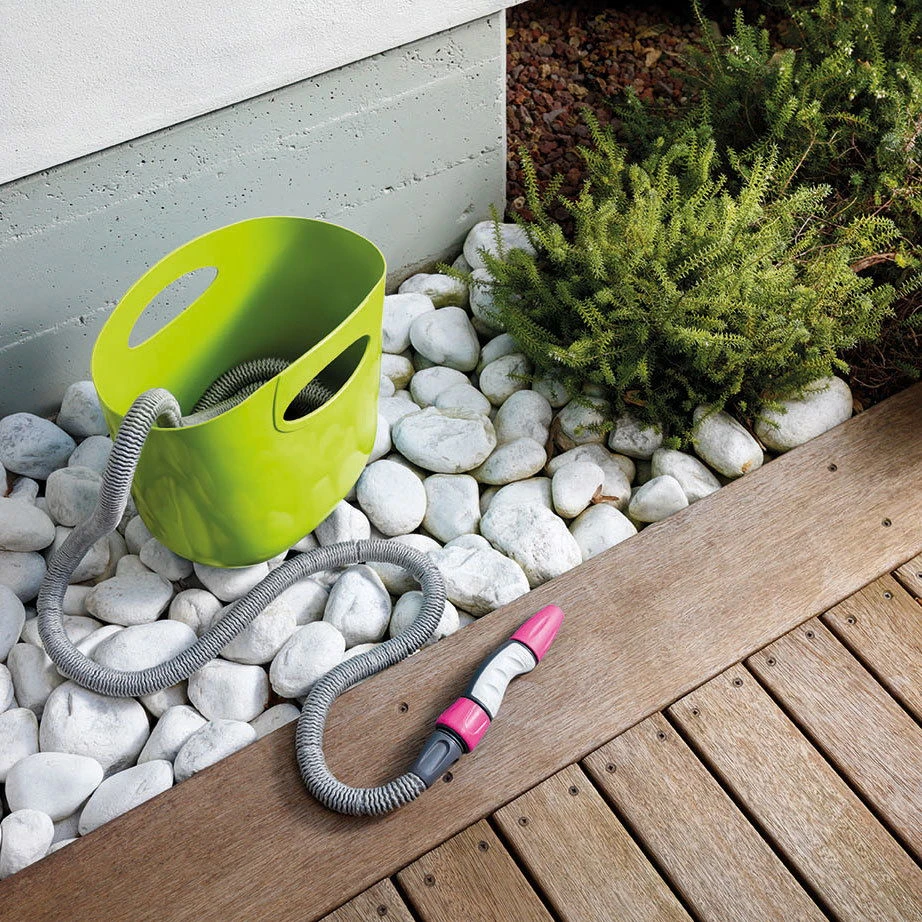 Der Clou für die Pflanzenwässerung: Ein sich selbst bei der Anwendung ausdehnender Schlauch! Diese Leistung bringt der Aquapop aus Kunststoff, der sich nach Gebrauch auf kompakte fünf Meter einrollt, zuvor aber bis zu 15 Meter messen kann. Er ist überdies leicht im Eigengewicht und kommt mit einer praktischen Polyester-Tasche zum platzsparenden Verstauen.