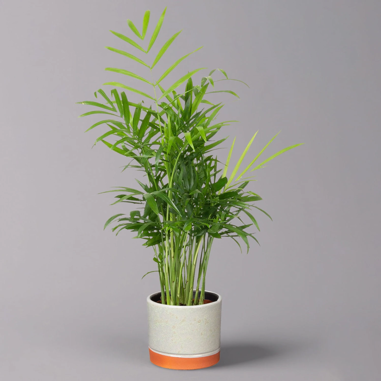 Die Mexikanische Bergpalme (Chamaedorea elegans) ist eine tolle Einsteigerpflanze für frisch gebackene Pflanzenfreunde, da sie besonders robust ist und den ein oder anderen Pflegefehler gutmütig verzeiht. Ihrem Namen entsprechend stammt die Palme aus den mittelamerikanischen Bergregionen, wo sie im Schatten größerer Bäume als Unterwuchs gedeiht. Charakteristisch ist der schmale Stamm mit überhängenden, zierlich wirkenden Blattwedeln, die aus einzelnen, lanzettlichen Fiedern bestehen. Im Zimmer kann die Pflanze Höhen von bis zu 2 Metern erreichen.