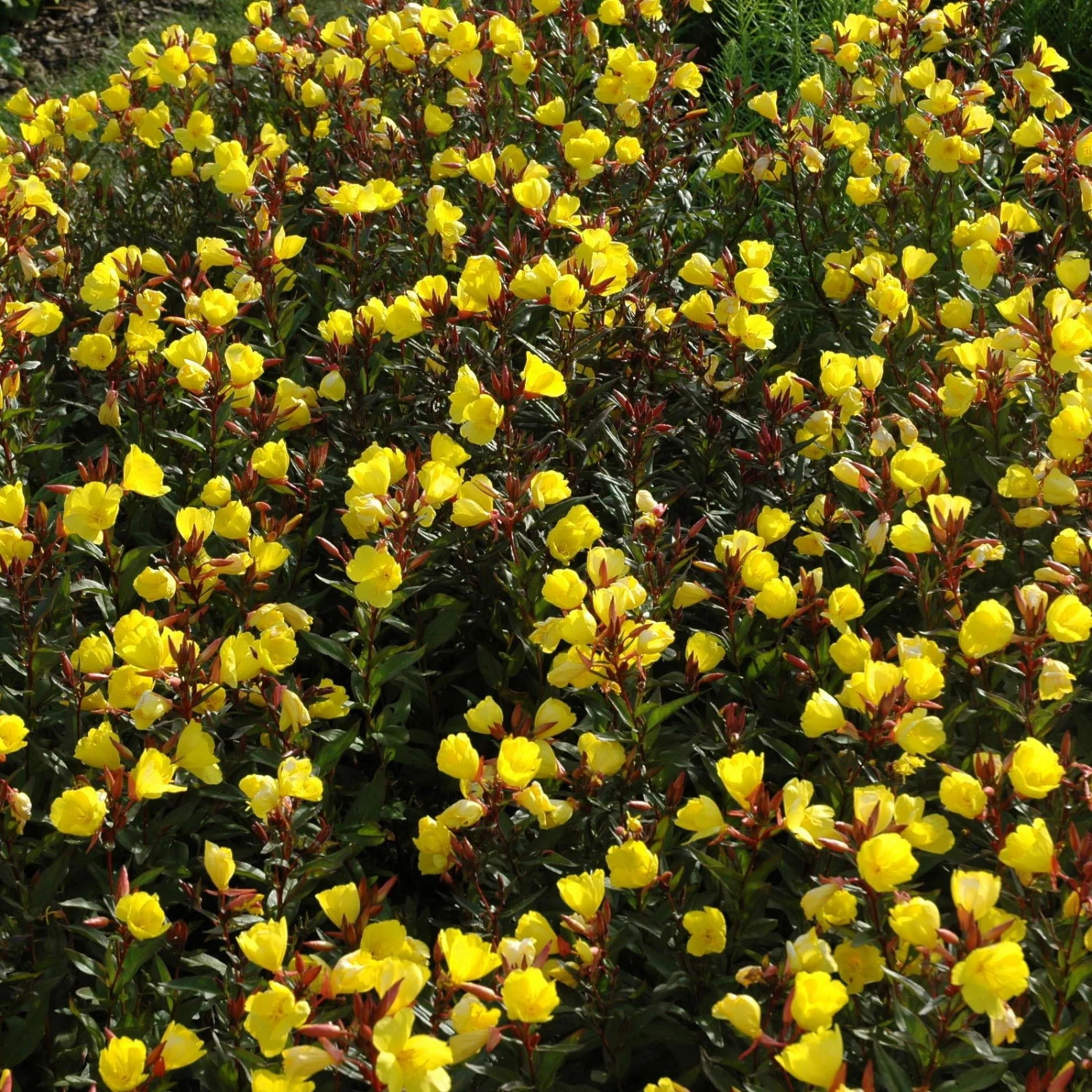Mit graziler Eleganz erfreut die winterharte Nachtkerze den ganzen Sommer. Reichblühend und duftend zieht sie in Gärten und auf dem Balkon alle Blicke auf sich. Die trichterförmigen Blüten überzeugen mit einer umwerfenden Leuchtkraft. Mit üppiger Blütenfülle erfreut die mehrjährige Pflanze den ganzen Sommer und mit ihren goldgelben Blüten stellt sie sich gerne in den Mittelpunkt. Mit einer Höhe von bis zu 40 cm fügt sich die robuste Staude hervorragend in Rabatten und Blumenbeete ein und begeistert durch zahlreiche Verwendungsmöglichkeiten. Besonders in naturnahen Anlagen, Kiesgärten und Steingärten kommt die Nachtkerze hervorragend zur Geltung. Schöne Kombinationen ergeben sich in Pflanzungen mit anderen sonnenliebenden Stauden wie beispielsweise Sonnenröschen, Fetthennen oder Katzenminze. Erfreuen Sie sich neben der Farbenpracht an dem feinen Duft der Nachtkerze. Für Bienen und andere Insekten stellt die Staude eine wertvolle Nahrungsquelle mit langer Blütezeit dar.