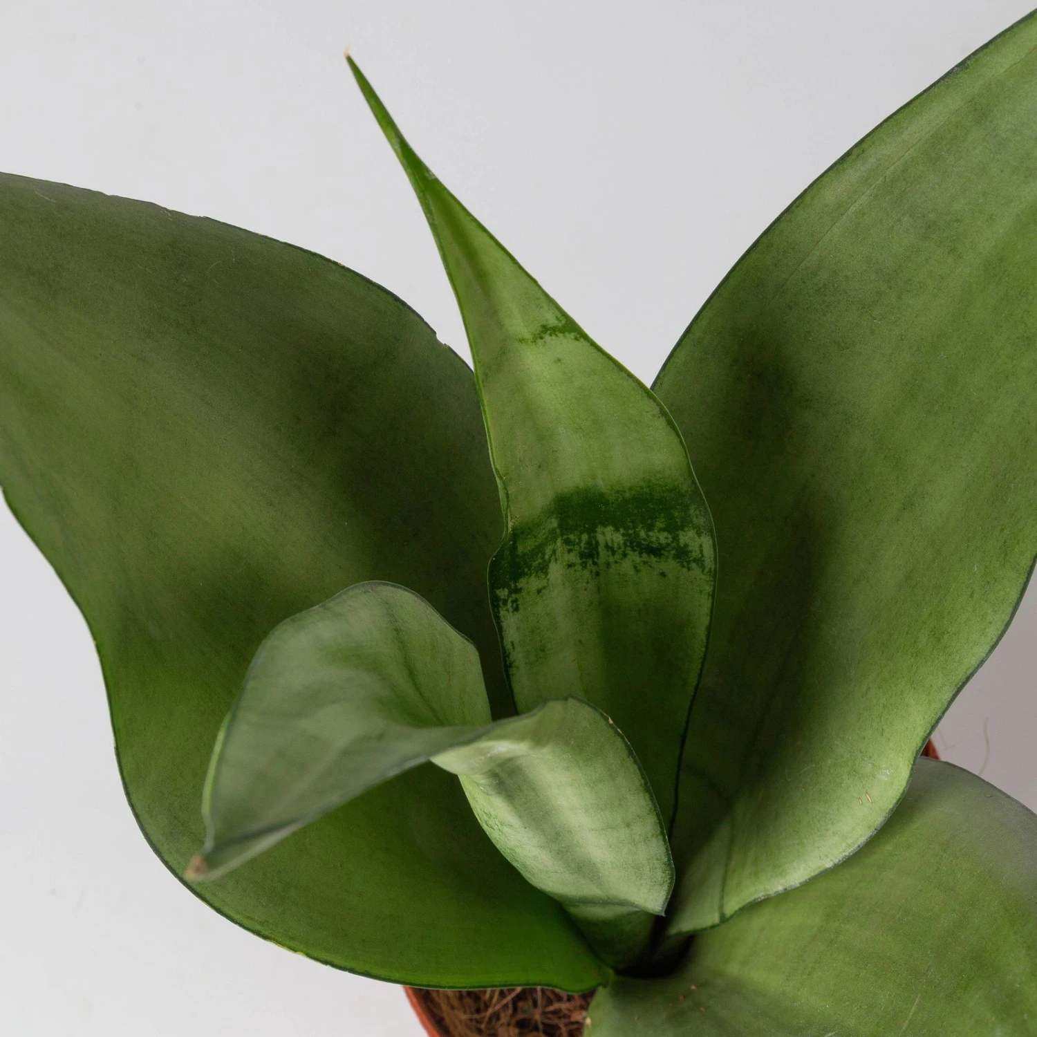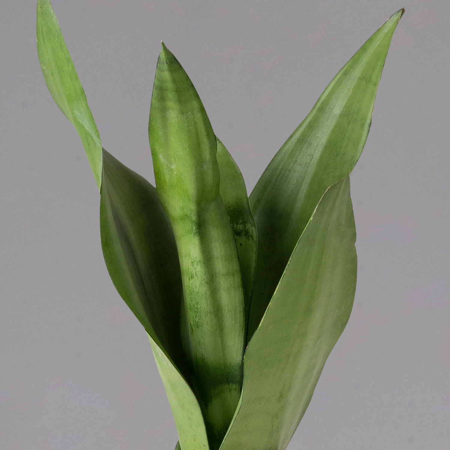 Der Bogenhanf (Sansevieria trifasciata ‚Moonshine‘) gilt als eine der robustesten und pflegeleichtesten Zimmerpflanzen überhaupt und ist auch unter den Namen ‚Sansevierie‘ oder ‚Schwiegermutterzunge‘ bekannt. Charakteristisch sind die riemenartig festen, fleischigen Blätter, die bei der Sorte ‚Moonshine‘ in pastelligem Hellgrün erscheinen. Die grundständigen Blätter entspringen einem Rhizom und enden aufrecht in einer Spitze. Bei guter Pflege kann der Bogenhanf über einen Meter hoch werden.