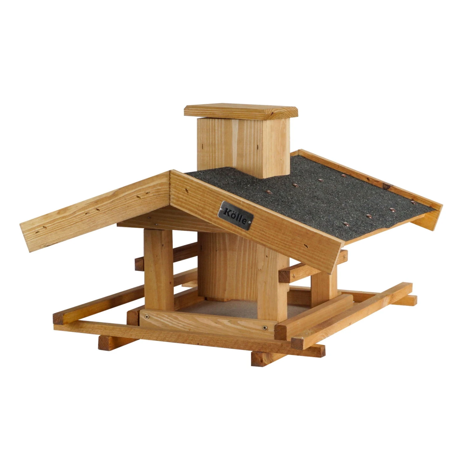 Dieser Futterspender aus Kiefernholz mit schwarzem Bitumendach ist liebevoll und artgerecht handgefertigt, um die gefiederten Freunde während der kalten Jahreszeit mit Nahrung zu versorgen. Das Vogelfutterhaus von Kölle verfügt über ein integriertes Silo, ist einfach zu befüllen und gibt das Futter gleichmäßig ab. An einem wind- und sonnengeschützten Standort ist der Futterspender am besten aufgehoben.