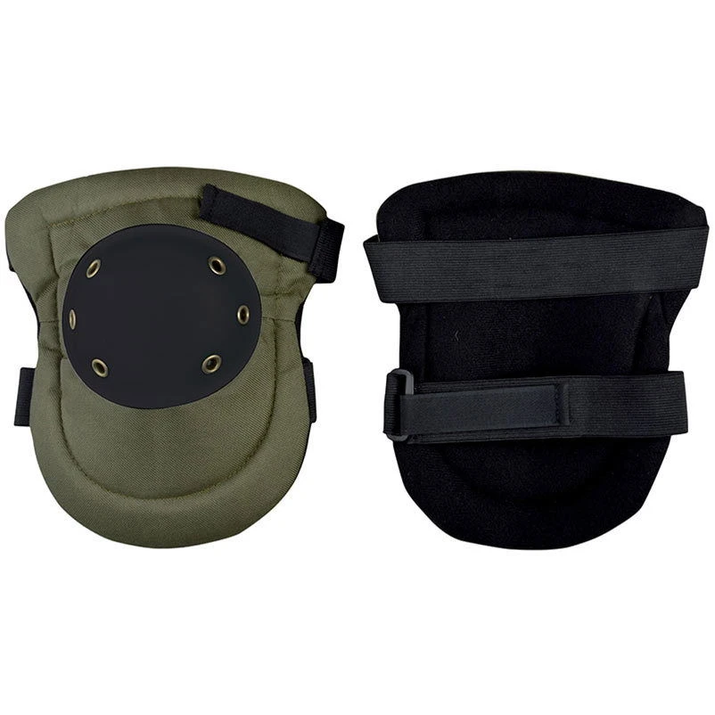 Die hochwertigen Knieschützer bestehen aus olivgrünem Oxford-Gewebe und einem schwarzen Knieschutz. Die Kniepolster sitzen dank des verstellbaren Klettverschlusses optimal und rutschen nicht.