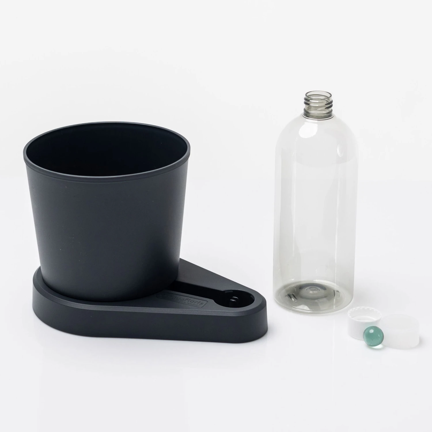 Der Kräuterheld kümmert sich um Ihre Küchenkräuter oder Zimmerpflanzen und versorgt die Gewächse mit lebenswichtiger Feuchtigkeit. Das Pflanzgefäß aus strapazierfähigem Kunststoff in der Farbe Anthrazit ist selbstbewässernd und funktioniert dabei nach rein physikalischem Prinzip ohne Strom oder Batterien.