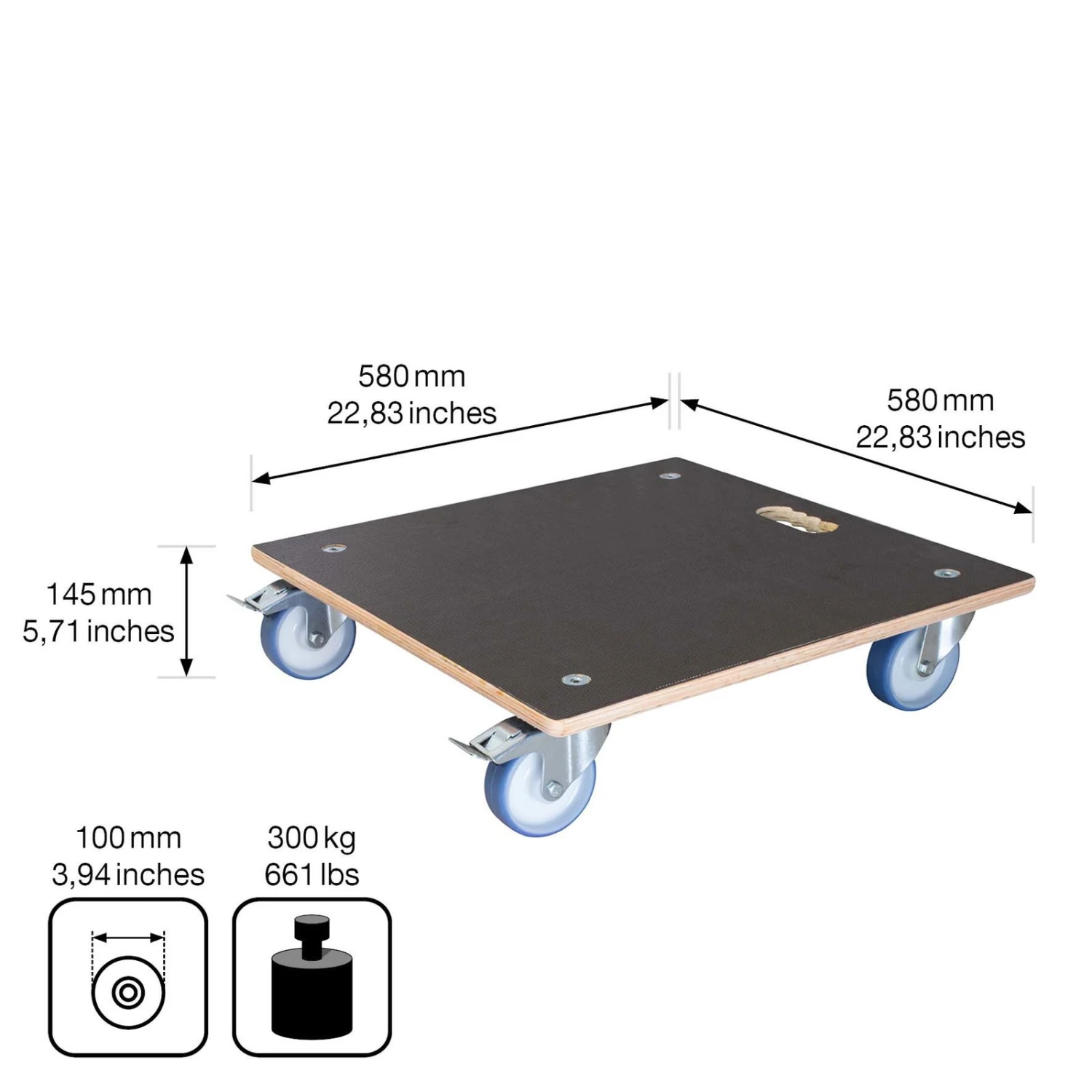 Multi Roller Maxi GRIP, 300 Kg Tragkraft, Holz, Ca. 58 X 58 X 15 Cm