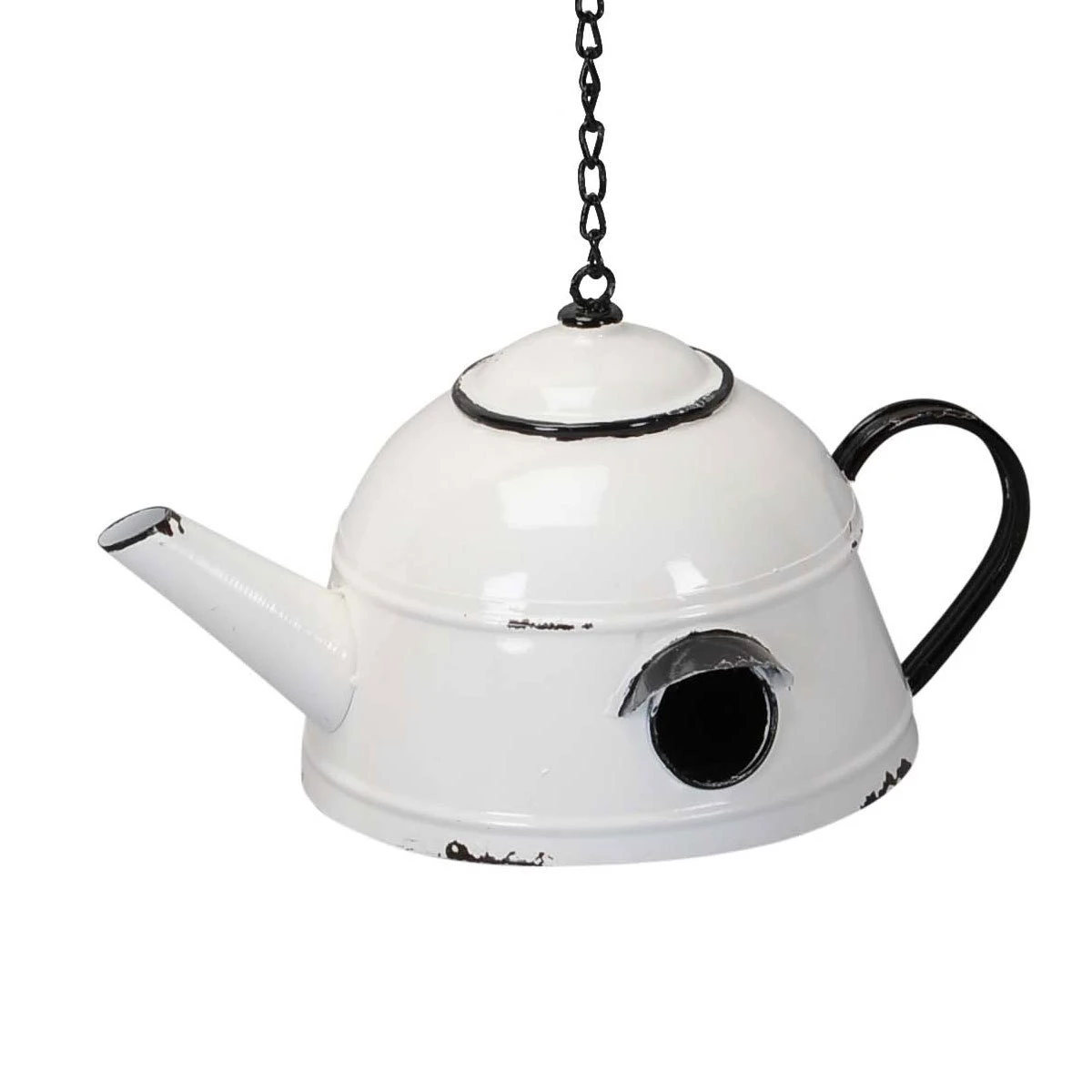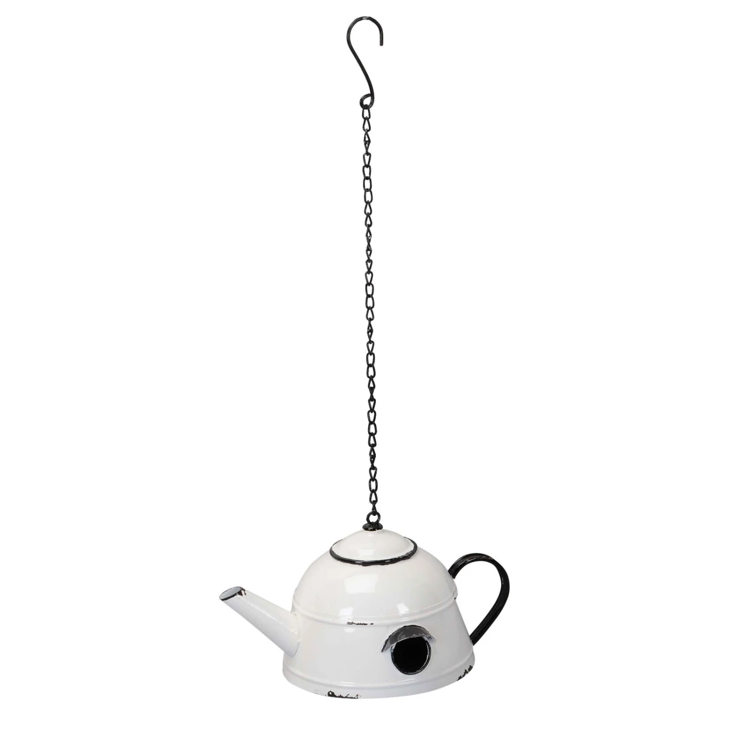 Mit dem Nistkasten ‚Teekessel‘ laden Sie gefiederte Freunde in Ihren Garten oder auf den Balkon ein. Dieses Vogelhäuschen aus Eisen ist mit einer robusten Kette ausgestattet und lässt sich mit wenigen Handgriffen aufhängen. Optimal ist ein windgeschützter Standort im Schatten, welcher zudem für Katzen unzugänglich wäre.