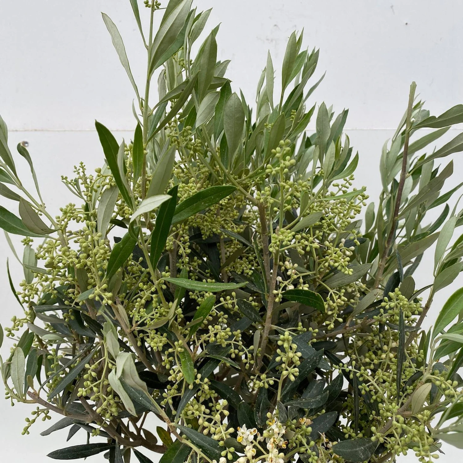 Ab Mai tragen Oliven gelblichweiße Blüten, die traubenartig zusammenstehen und dabei einen feinen Duft verbreiten. Beachten Sie, dass Oliven erst ab einem bestimmten Alter (4 bis 6 Jahre) Blüten ansetzen. Ab dem siebten Standjahr bilden sich die essbaren Früchte. Die Früchte sind ab dem 2. Fruchtjahr zum Verzehr geeignet.
