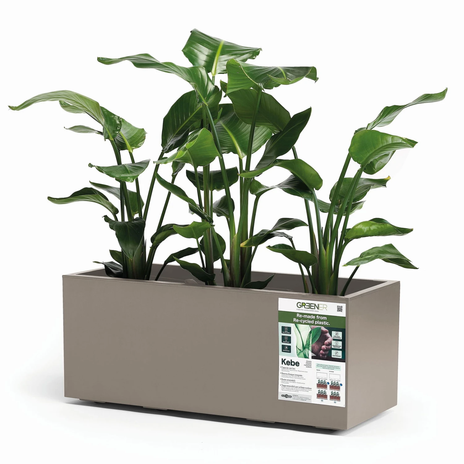 Der Pflanzkasten KEBE von Euro 3 Plast besteht aus hochwertigem, hitze- und UV-resistentem Kunststoff und präsentiert sich in der neutralen Farbe Taupe. Dieser Pflanztrog bleibt dank der feststellbaren Bodenrollen mobil. Die doppelwandige Ausführung und ein integrierter Wasserspeicher lassen ein optimales Mikroklima für alle Zier- oder Nutzpflanzen entstehen.