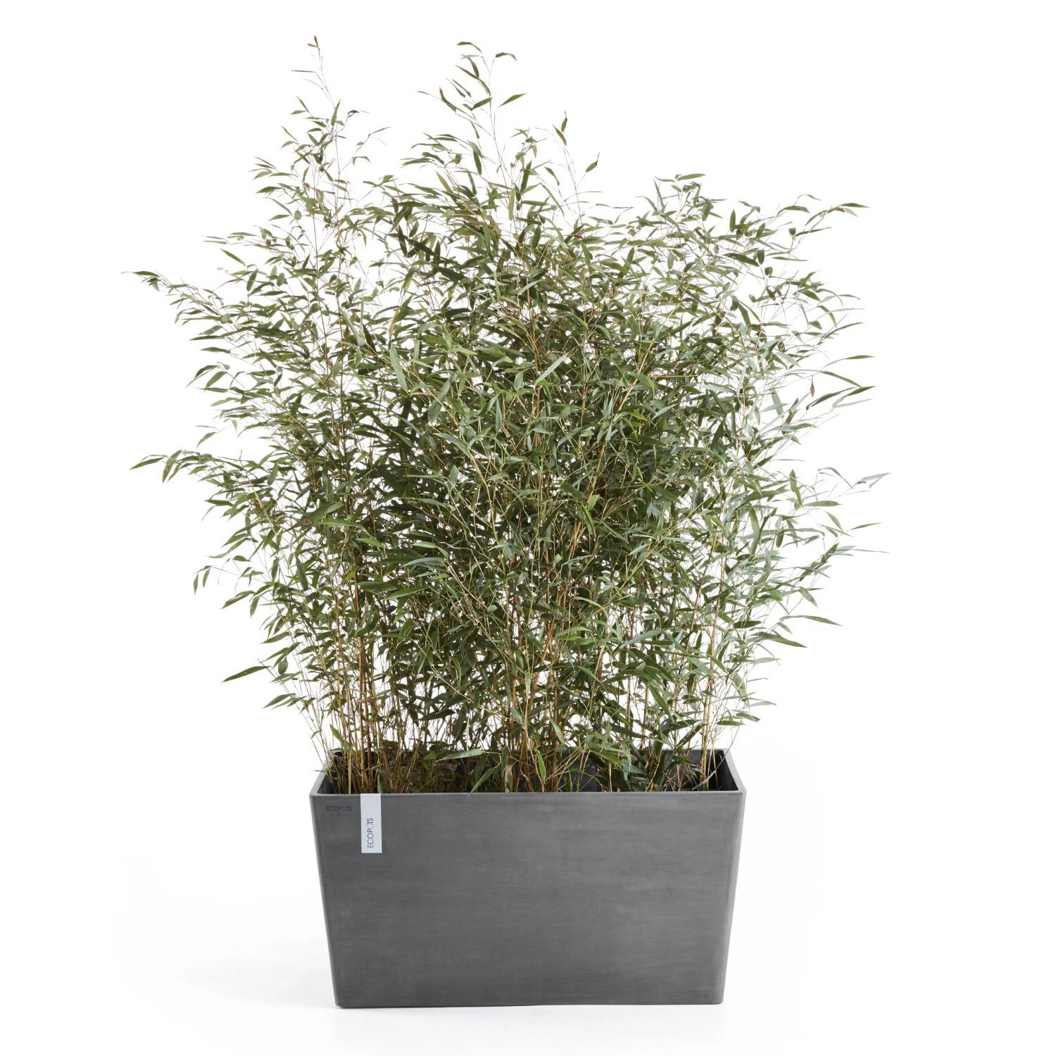 Als Raumteiler oder Abgrenzung macht der graue Pflanzentrog ‚Paris‘ von Ecopots im Innen- und Außenbereich eine gleichermaßen gute Figur. Dieser elegant designte Pflanzkasten in Betonoptik besteht aus recyceltem Stein- und Kunststoffpulver, wobei das Material frost- und bruchfest sowie UV-resistent ist.