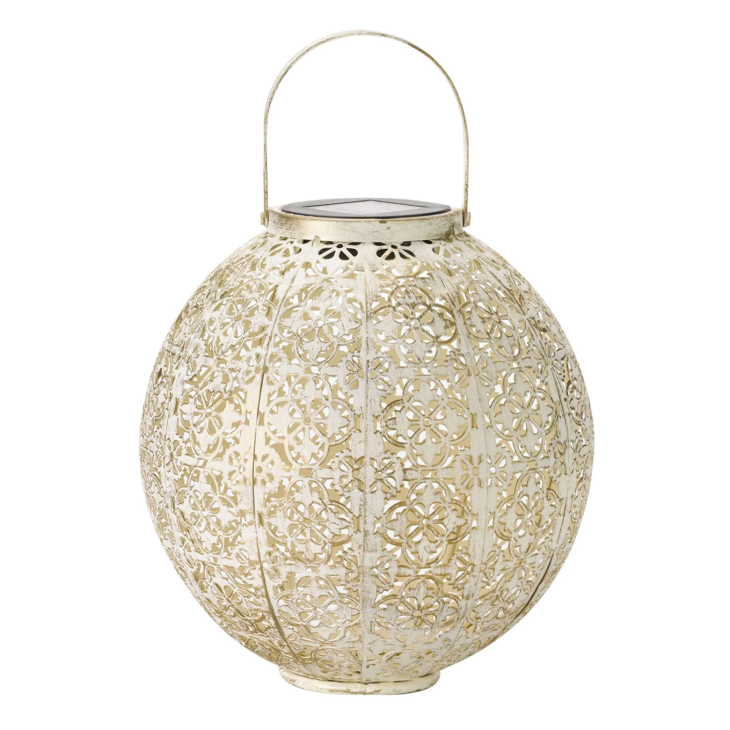Die außergewöhnliche und besonders hübsche Solarleuchte „Damast“ aus Metall begeistert im nordafrikanischen Design und trendiger Farbe. Die Solarlaterne in Form einer Kugel ist für den Outdoorbereich bestens geeignet und dafür konzipiert. Am Tag überzeugt die Solar Laterne als charmante Deko, bei Dunkelheit zeigt sie eine spektakuläre Beleuchtung in Ihrem Garten, auf der Terrasse, dem Balkon oder auf dem Weg Ihres Hauses. Mit der schönen Solar Laterne zaubern Sie Stück für Stück eine Wohlfühloase aus Ihrem Garten. Die solarbetriebene Leuchte besitzt ein warmweißes, angenehmes Licht und bringt Helligkeit nach Draußen. Das Muster in der Metallwand der Lampe wird durch das Licht reflektiert und zeichnet wunderschöne Ornamente auf den Boden und die Wand.