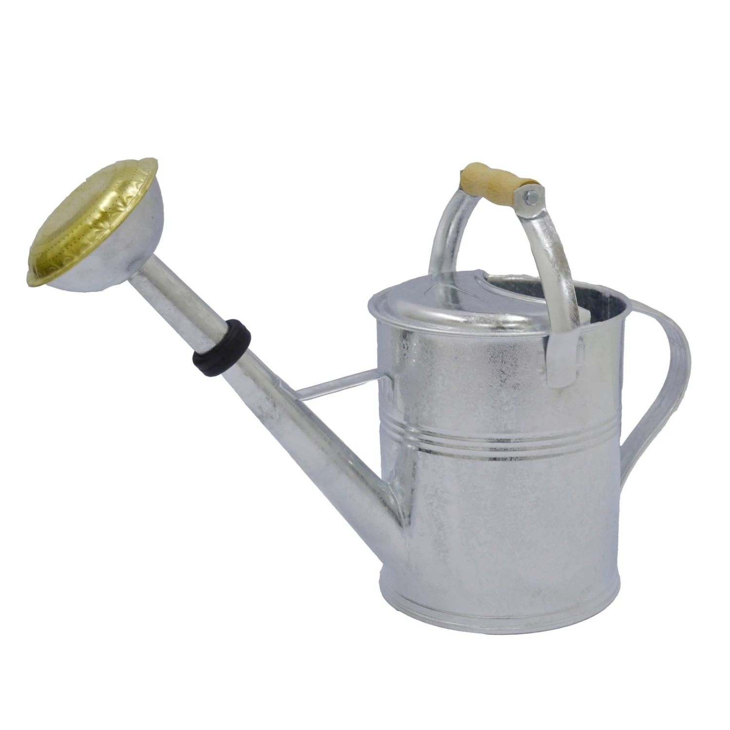 Zinkgießkanne Mit Holzgriff Und Messingbrause, Grau